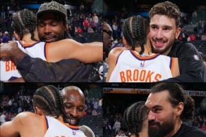 昔日好兄弟!赛后杰伦·格林&狄龙与火箭众将叙旧拥抱&有说有笑